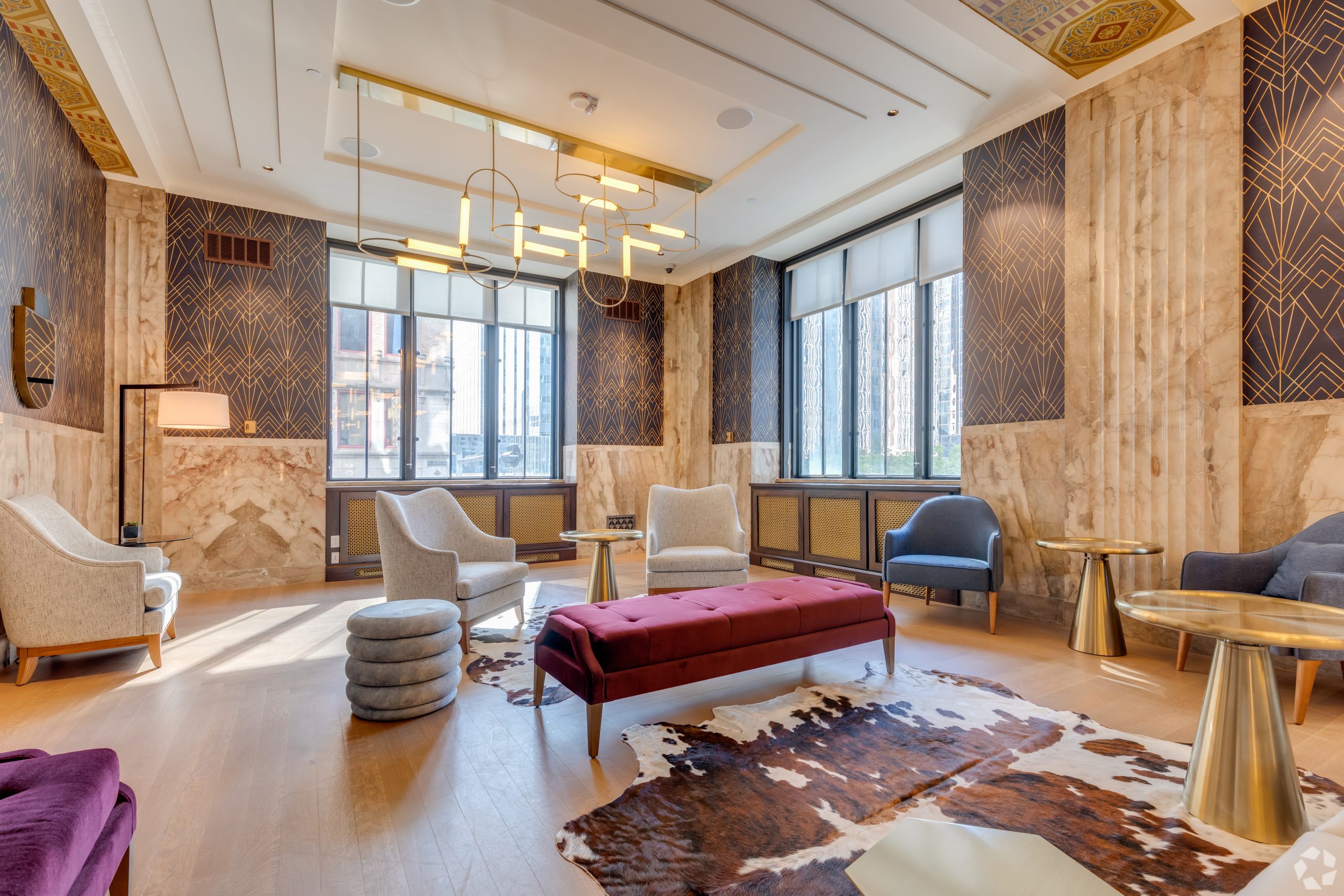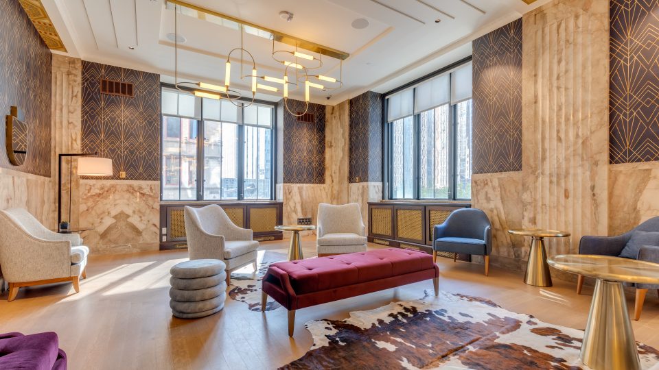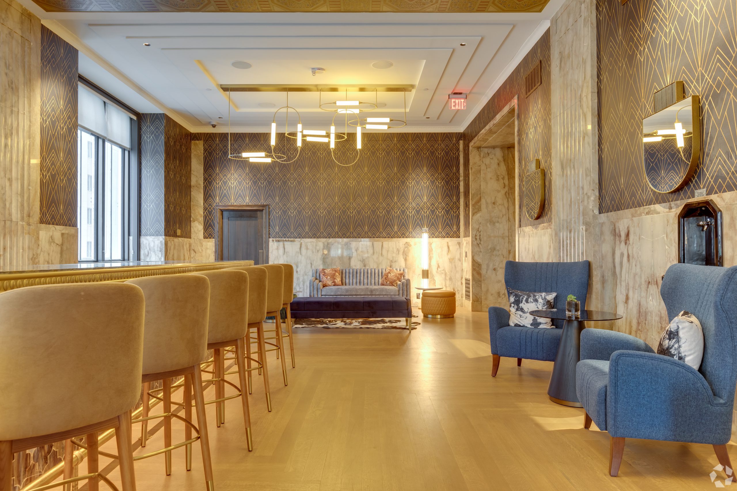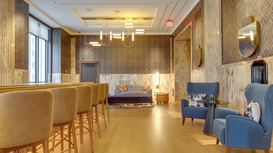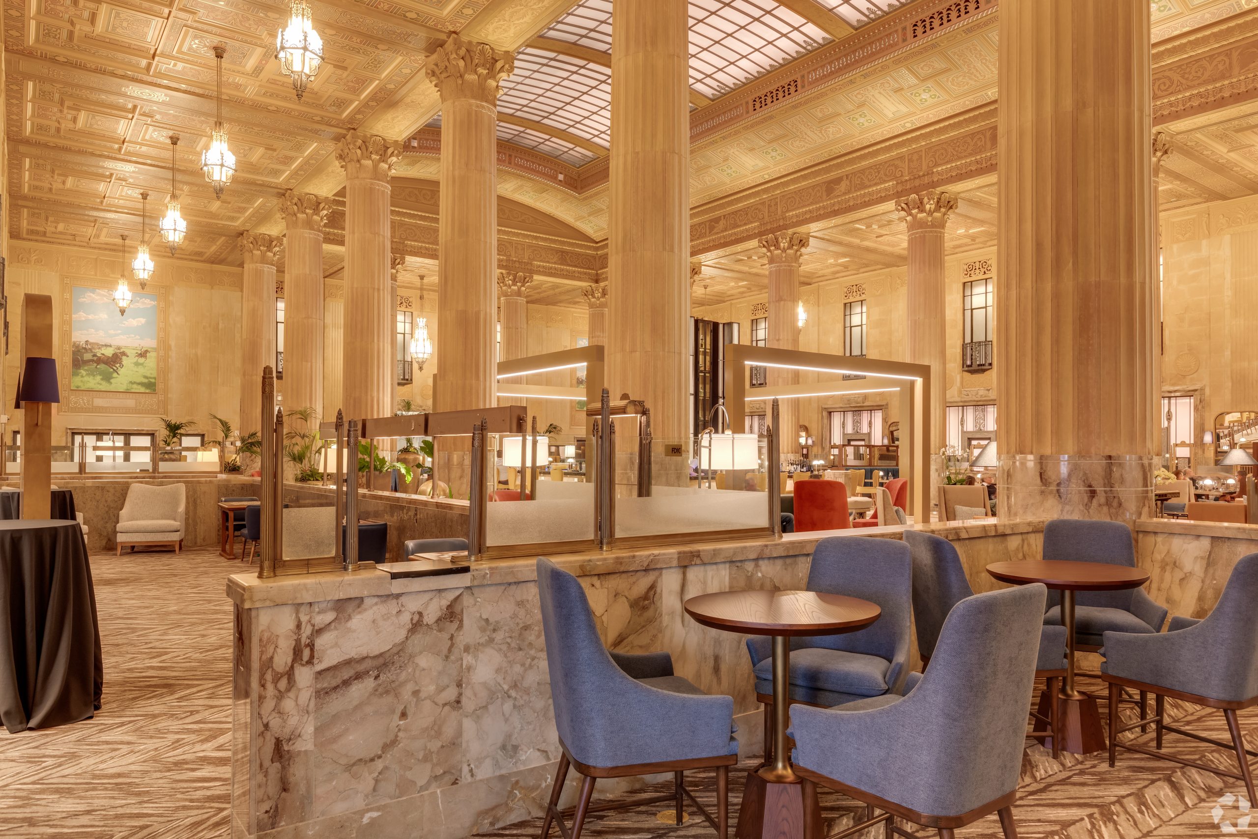 At The First, history and elegance is infused into every detail, every amenity, and every piece of art. Oil drilling, the banking industry, and even the history of Oklahoma are all woven into the fabric of our building, captured in stone, metal, and murals. Explore our gallery below for a closer look at the awe-inspiring finishes and historical details that set our apartments for rent in Oklahoma City above the rest.