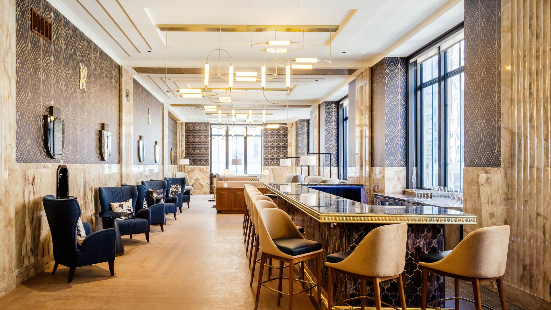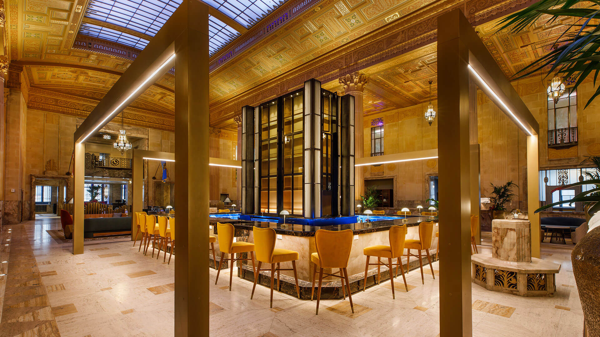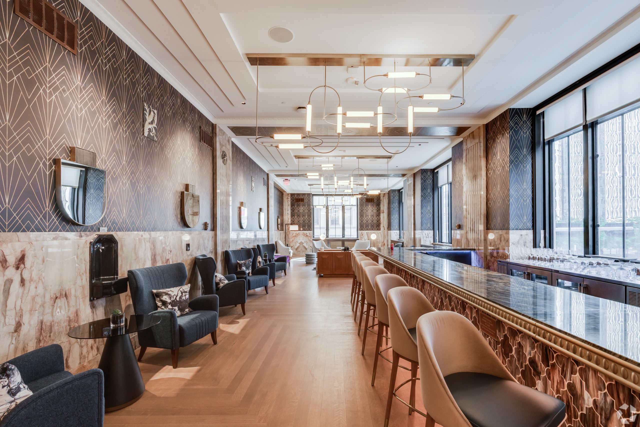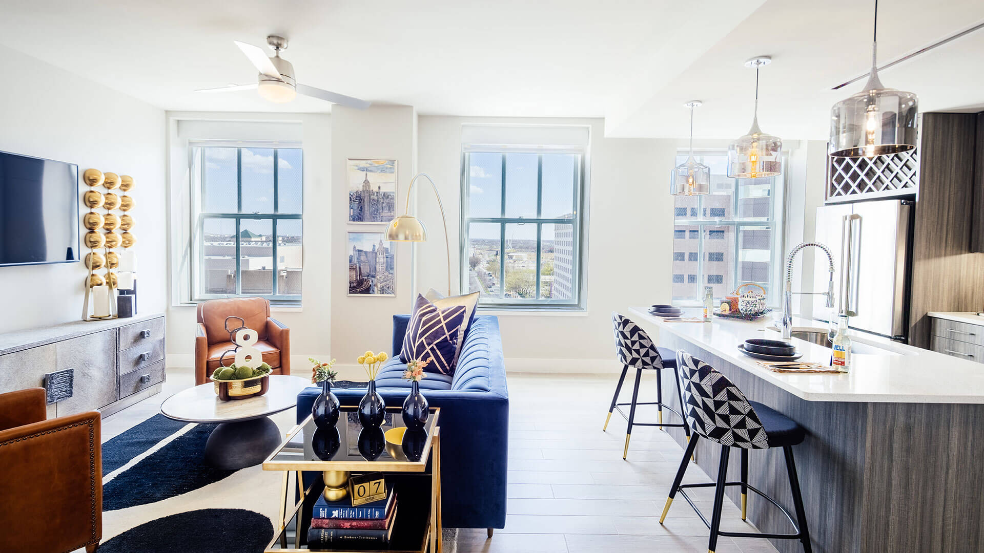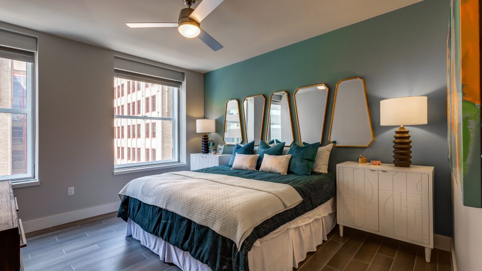 At The First, history and elegance is infused into every detail, every amenity, and every piece of art. Oil drilling, the banking industry, and even the history of Oklahoma are all woven into the fabric of our building, captured in stone, metal, and murals. Explore our gallery below for a closer look at the awe-inspiring finishes and historical details that set our apartments for rent in Oklahoma City above the rest.