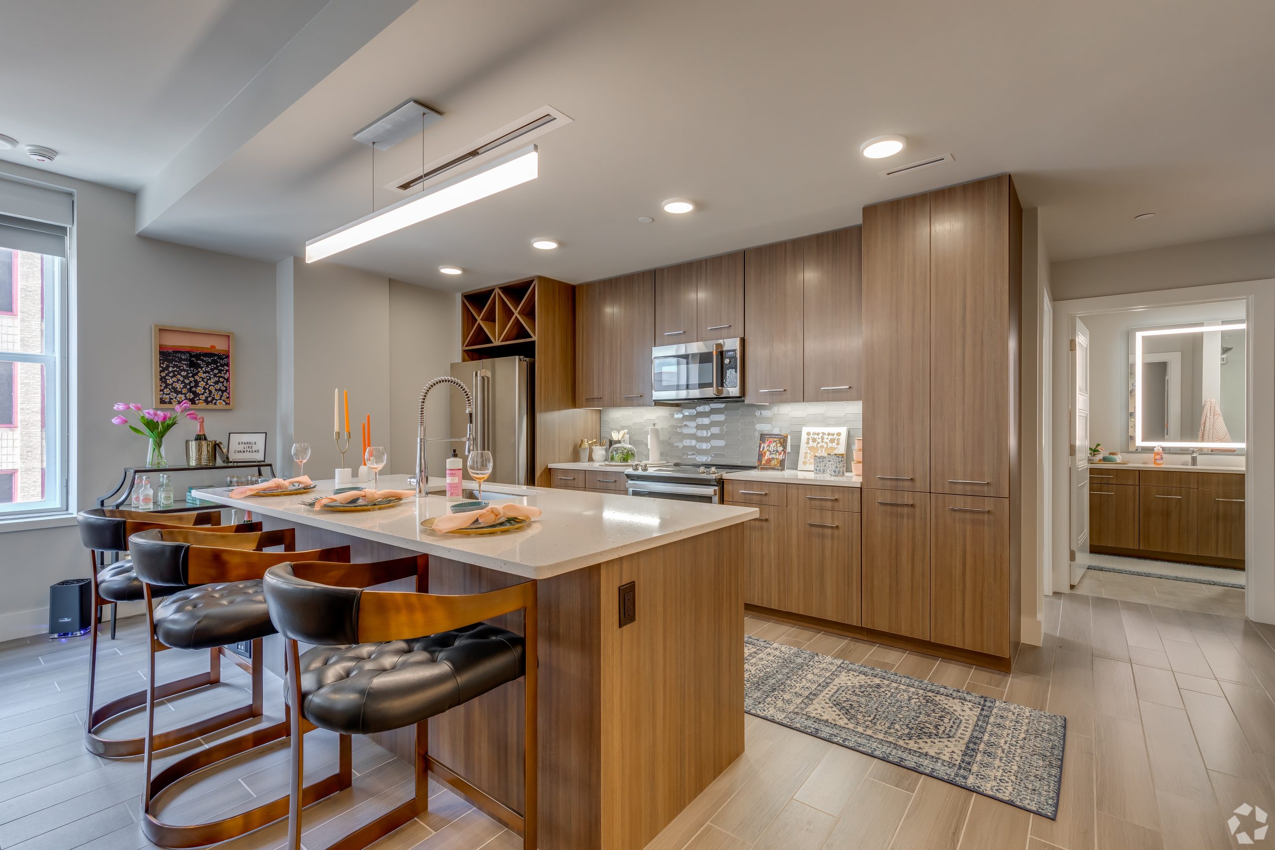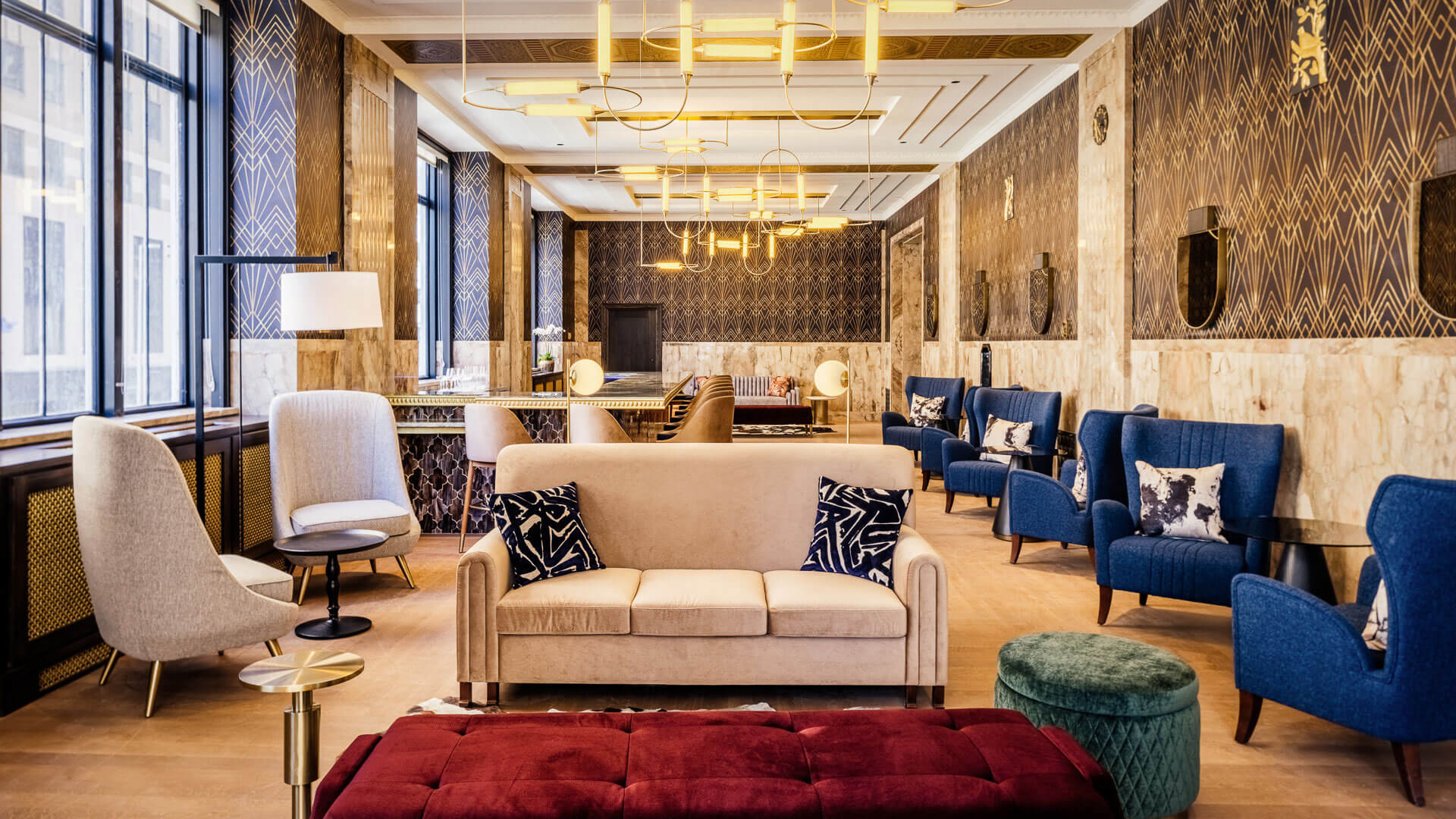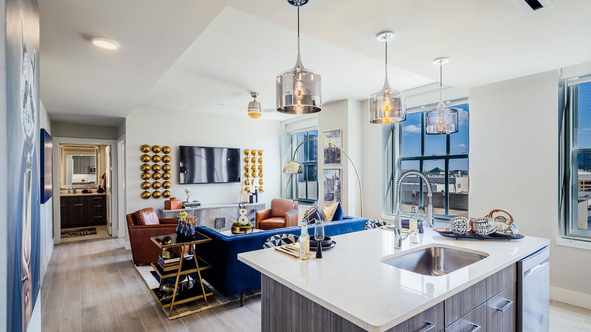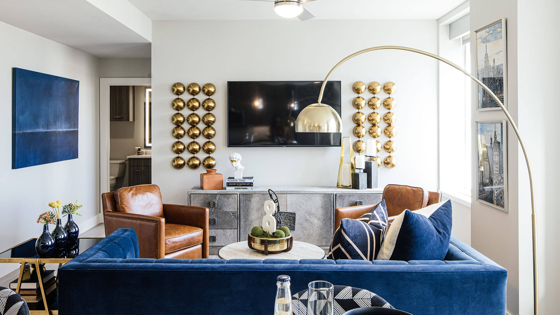 At The First, history and elegance is infused into every detail, every amenity, and every piece of art. Oil drilling, the banking industry, and even the history of Oklahoma are all woven into the fabric of our building, captured in stone, metal, and murals. Explore our gallery below for a closer look at the awe-inspiring finishes and historical details that set our apartments for rent in Oklahoma City above the rest.